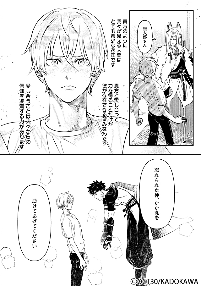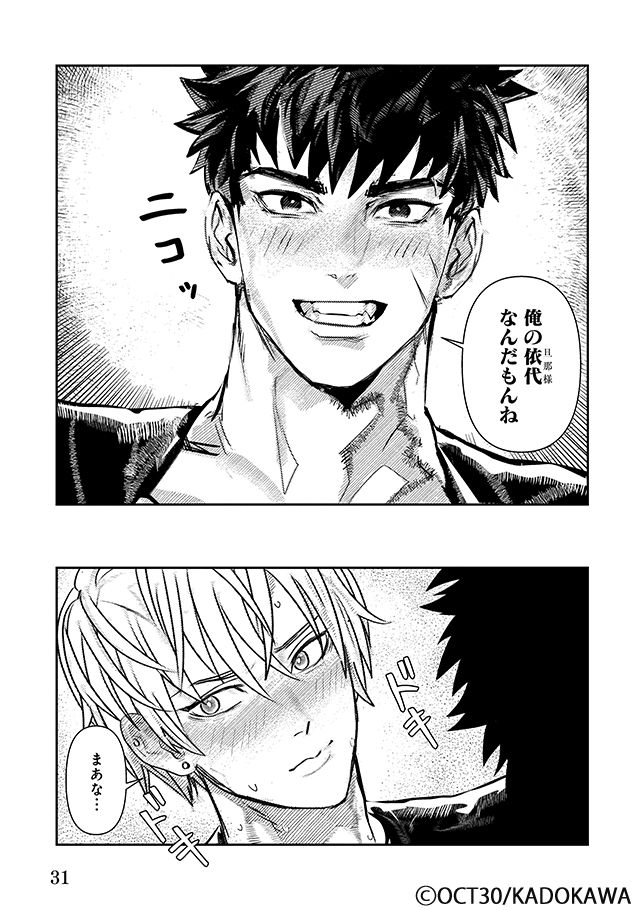 あまりにも画力が高くアクションシーンの迫力がすごいOCT30先生が「BLを描きたい!」と言ってくださった時に「ジャンルはBLで合ってますか…?」と聞き返してしまったのを覚えています。