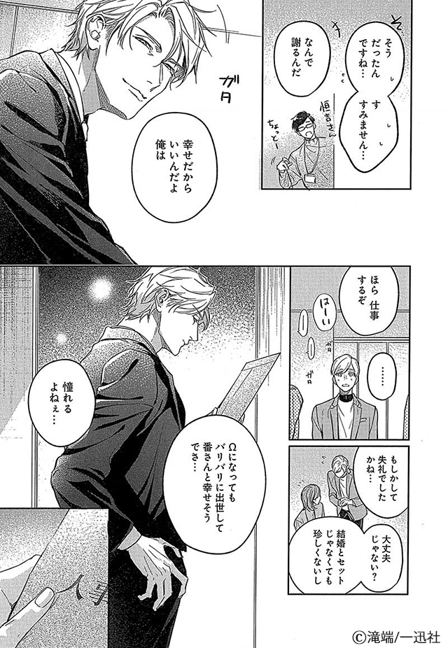 突然変異でΩとなった元エリートα・恒吉と、βからαへと変わった麻川。番となった二人の“その後”を描きます。