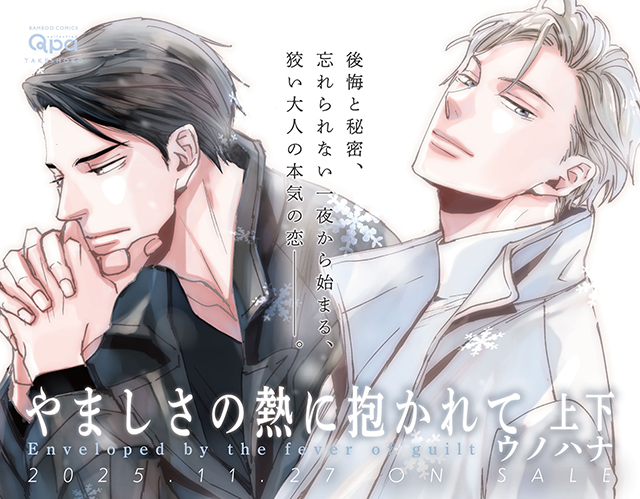 色気が香り立つ大人の男性の恋を繊細でリアリティのある心理描写で描き、読者をストーリーに惹き込むウノハナ先生のQpa最新刊、『やましさの熱に抱かれて』が上下巻の大ボリュームで同時発売です!