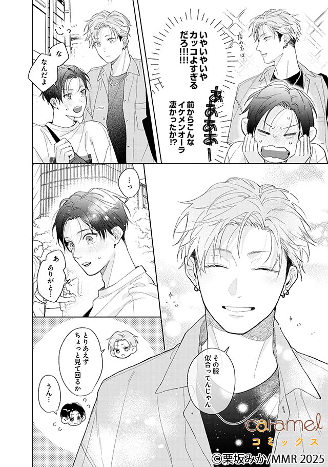 2人の私服のシーンでは、攻めはちゃんとオシャレな服装で、学校とはまた違うかっこよさをしっかり出すことと、受けはまだオシャレを勉強中な感じを出す、