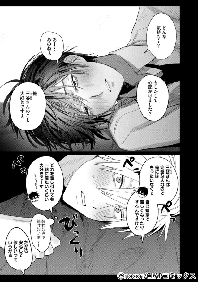 しかし、商業コミックス化されたことで「商業から入ってくれた読者さんにもより楽しんでもらえる内容にしたい」という思いが生まれ、2巻からは恋人としてのやりとりやストーリー部分の比重を少しずつ増やし、エロが主軸でありながらも柳瀬の成長やそれを見守る三谷の心の機微も見所になったかなと思います。