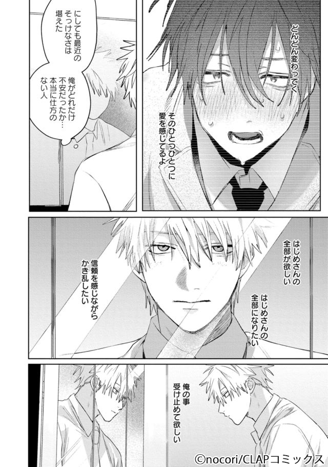 身体の関係から始まった二人ですが、お互いの弱いところもカッコ悪いところも曝け出し、心身ともに本当の意味で”愛し合える”存在へと変化していく二人の恋模様にご刮目ください…!